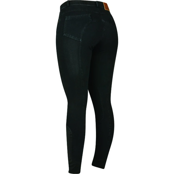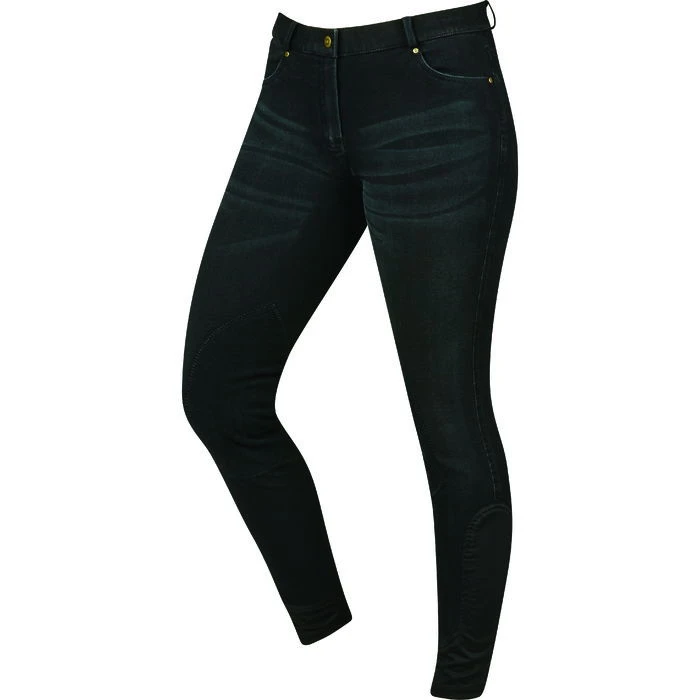 The Dublin Shona Denim Breeches are made from two way stretch denim fabric which offer compression and coverage, with contrast suede knee patch and belt loops for a stylish riding look. Features a front zip closure, 4 pockets, and a mid-rise no gap waistband.