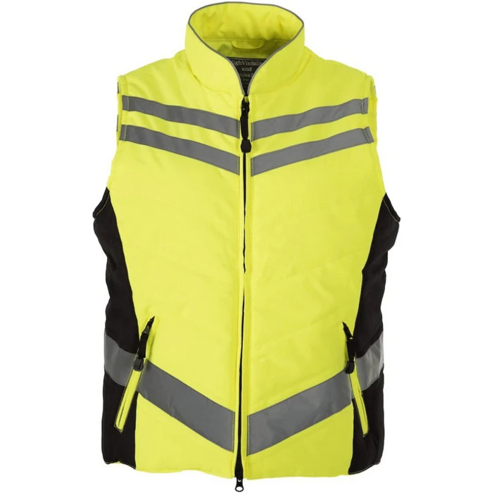 - The quilted hi-viz gilet is fitted, elegant, flattering, and comfortable to wear. 2 hidden zips at the back allowing extension over the back of the saddle. 3oz padding gives the wearer warmth without overheating.