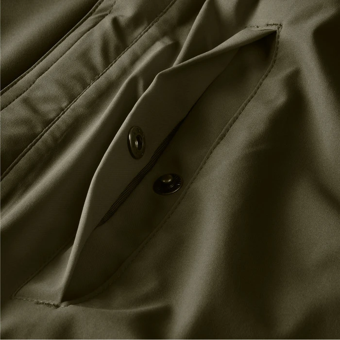 Like the rest of the Orton Packable range, the Orton Packable Trousers are made from a material that is not only very light but also stretchable and soft. The trousers incorporate our own windproof and waterproof HWS (Härkila Weather System) membrane that has been designed specially for hunting and is low-noise, supple and stretchable. Because both the fabric and the membrane are supple and stretchable, you retain freedom of movement, even when wearing the trousers over another pair. The trousers have full-length zips on both legs, so they are very easy to put on and take off without having to remove your boots. The zips are covered with a storm flap with a Velcro closure. The size of the boot opening can also be adjusted at the ankles. Instead of pockets, the trousers have openings with press-studs on each side for access to the pockets of the trousers being worn underneath. The trousers have an integral zip pocket at the waist, for quickly packing them away in.