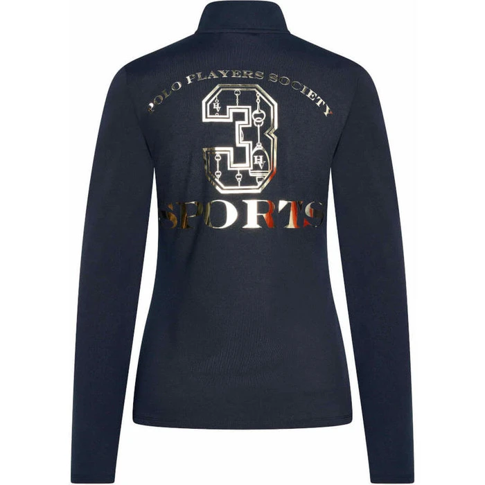 Made of a technical material, for a comfortable riding. Polyester and spandex have the property of being particularly quick-drying and breathable, in addition, any moisture produced is transported to the outside. These materials are also very stretchy and also dimensionally stable. The mesh inserts at the shoulders and chest provide additional breathability. The collar and cuffs are woven with a shimmering yarn for a luxurious look. Easy and quick opening and closing of the shirt is possible thanks to the practical snap button placket. The HV Polo brand logos on the chest and the print on the back neckline provide visual highlights.