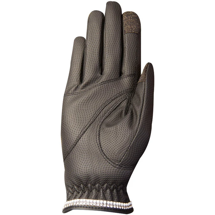Fancy gloves with pearls, rhinestones and logo embroidery.