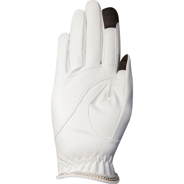 Fancy gloves with pearls, rhinestones and logo embroidery.