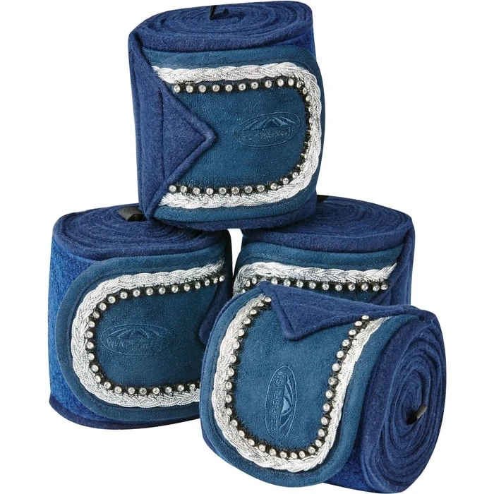 The WeatherBeeta Prime Fleece Bling Bandages feature crystal detailing and rope braiding for added style. Set of four bandages, perfect for protecting your horseâ•”s legs from knocks and bumps during exercise, made from a soft, high quality anti-pilling fleece, with a single touch tape fastening. Complete with a re-usable carry bag. Matching range available.