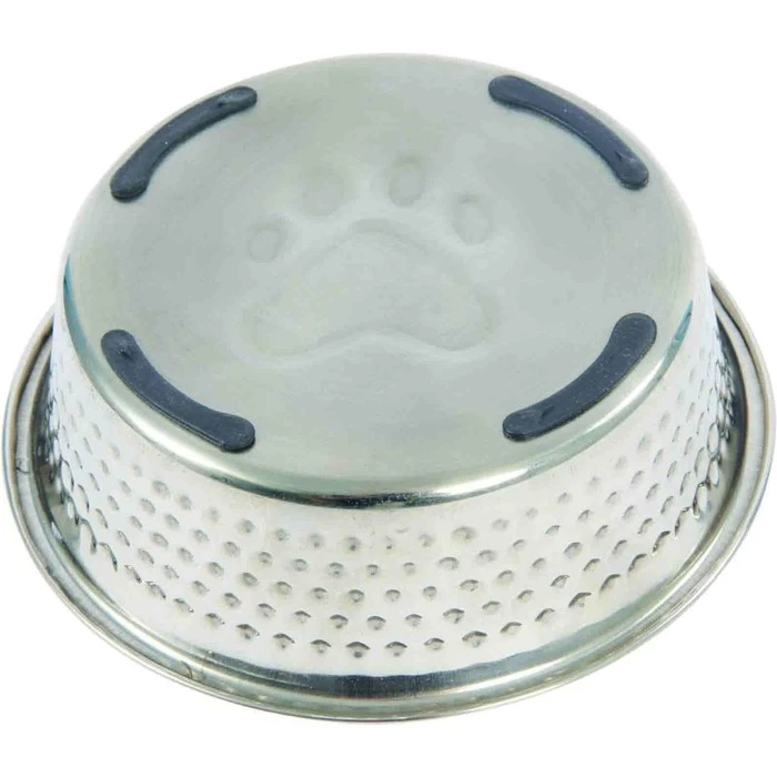 Stainless Steel dog bowl that comes in a range of colours, ideal as a water or feeding bowl. Features a silicone rubber base to reduce noise and stop skidding.