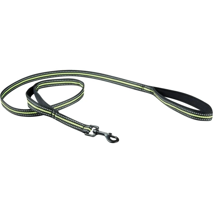 - Nylon webbing is woven with highly reflective threading for safety.