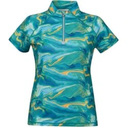 The WeatherBeeta Ruby Printed Short Sleeve Top offers bi-stretch jersey fabric for movement and comfort, making this is a great breathable base layer. The Comfort Dry Technology ensures any moisture dries quickly to keep you cool, comfortable and dry, with mesh side panels, under sleeves and back yoke for extra ventilation to keep you cool. Featuring a stand collar with 1/4 zip placket front and a slim fit for a flattering and marble printed stylish look. 90% Polyester/10% Elastane.