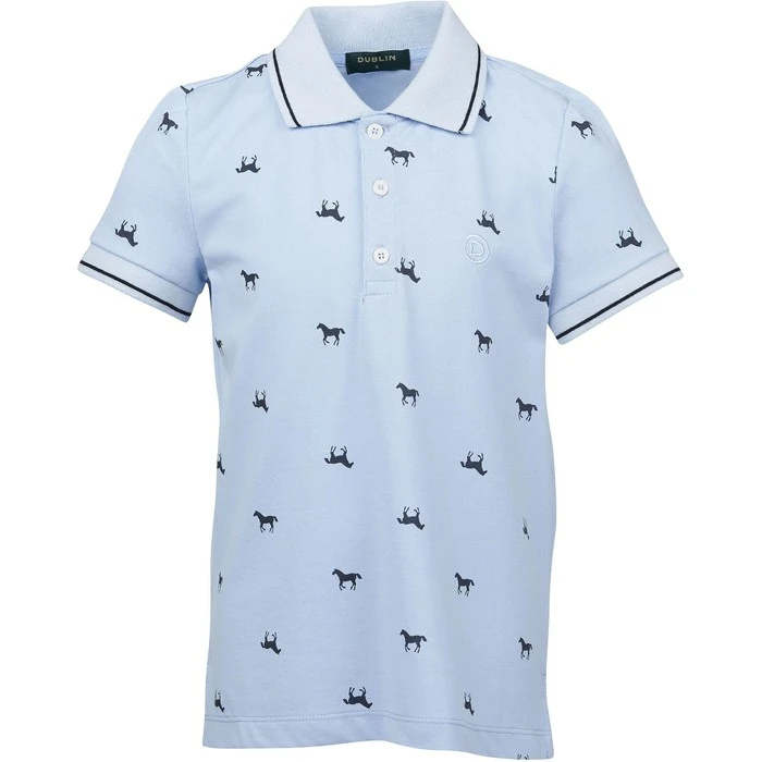 This is a fun and comfortable edition to any childs wardrobe, with all-over horse motif print this classic stretch pique polo is naturally breathable making it perfect for all day wear. Short sleeves with flat knit rib cuffs and collar that can be worn up to offer protection on the neck on those sunny days. The button placket makes this easy to get on and off as well as offering a sporty look.