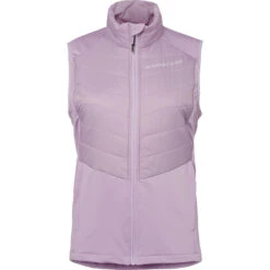 Hybrid vest with quilted insulated sections at upper body. Flexible tech fleece with soft brushed inside along sides.