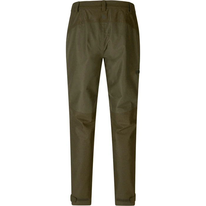 Superb waterproof and windproof trousers for women in a fine twill fabric with comfortable stretch. They have an elegant feminine fit. There are two front and one thigh pocket, all with waterproof zips. There are velcro adjusters at bottom hemline. The trousers are fully waterproof and windproof due to the SEETEX® membrane.