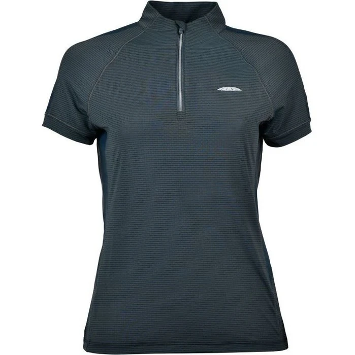 - Stand collar and 1/4 zip opening with mesh side panels and sleeve inserts for ventilation and breathability.
