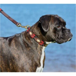 2022 Weatherbeeta Polo Leather Dog Collar 10016990 – Cowdray Brown / Blue Colour Blue/Cowdray Brown