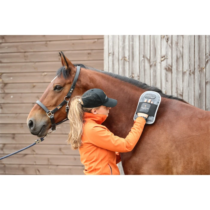 The Massage Mitt has three different settings, which can be selected easily from the mitt control panel. You can select the intensity of the program to suit your horses’ needs. Each program has three different types of massage: pulsing, vibration and stroking. This ensures the muscles are worked in different ways. Each session lasts 10 minutes which allows enough time for full coverage over the horses’ muscle groups.