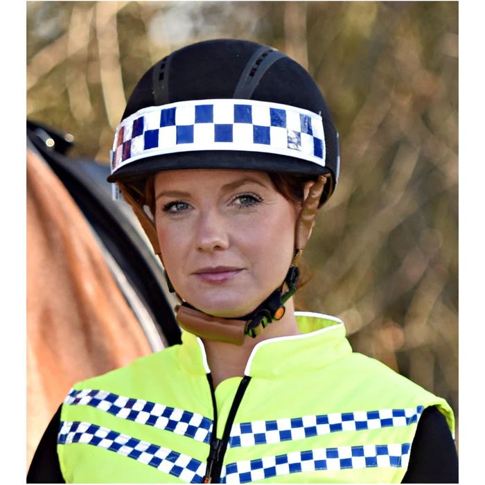 One Size fits most sizes and styles of riding hat. All reflective tape is 2” wide.