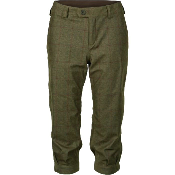 Like the other garments in this range, the Stornoway Shooting Lady Breeks have a traditional, feminine cut and are made from a stretch fabric with a soft, brushed finish and a tweed print. They also incorporate our own windproof and waterproof HWS (Härkila Weather System) membrane that has been designed specially for hunting and is lightweight, supple and stretchable. These breeks have also been treated with DWR (Durable Water Repellent). This gives them a dirt- and water-repellent finish. There is a fine-mesh lining inside to allow air to circulate at times of high exertion. The Stornoway Shooting Lady Breeks have two, open, slanted front pockets. The breeks are also adjustable around the bottom of each leg.