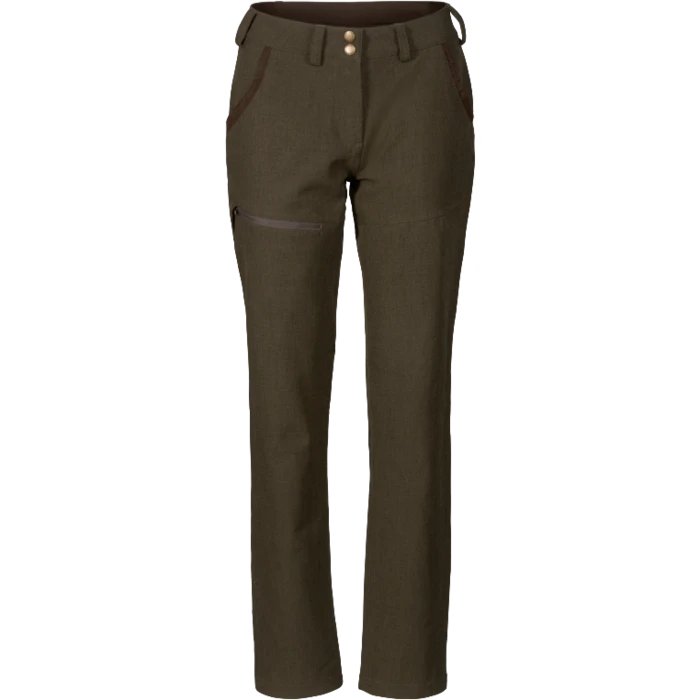 The Woodcock Advanced trousers are designed in the traditional English game-shooting style. But the traditional outer hides a wealth of carefully thought-out details. For optimum comfort and freedom of movement, the trousers are made from a stretch fabric and have articulated knees. Like the Woodcock Advanced jacket, they also have a windproof and waterproof SEETEX® membrane. The trousers feature thigh pockets with drain holes, ankle adjustments and braces buttons at the waist. So, even if the beats are only coming slowly and the weather is keeping the birds from flying high, you are guaranteed comfort and freedom of movement for the entire shoot. Together with the Woodcock Advanced jacket for women, they make a suit to perfectly fit in with any shooting party, but without restricting your freedom of movement.