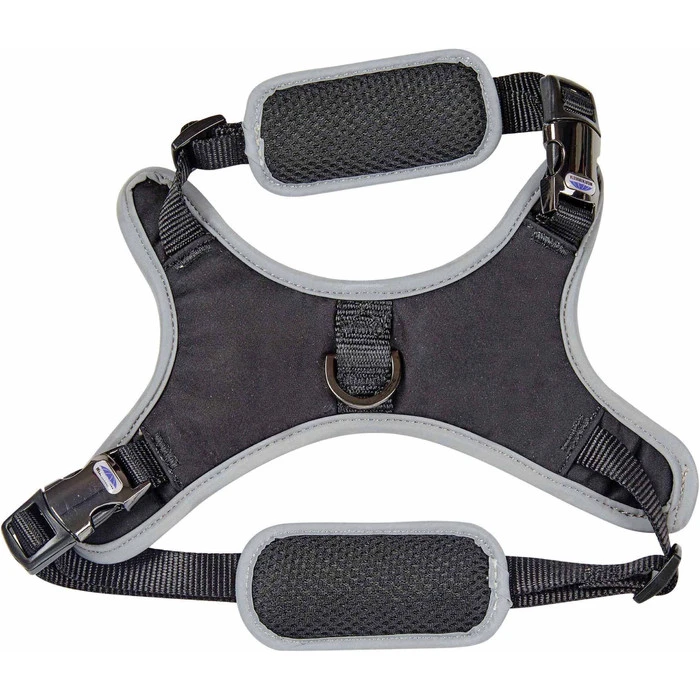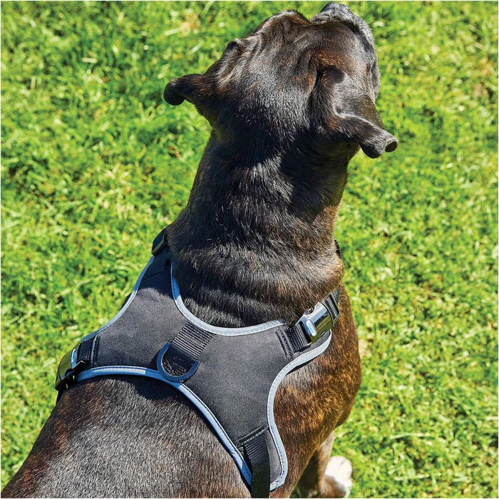 Made from Teflon coated material that is waterproof, repels dirt and is static free. The Elegance dog harness is super comfortable, with padding on the chest and abdomen straps. Tri-glide button for easy adjustment and a zinc alloy D ring for lead attachment. Matching range available to complete your dogs look.